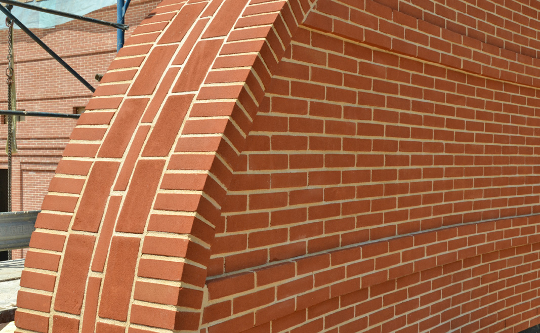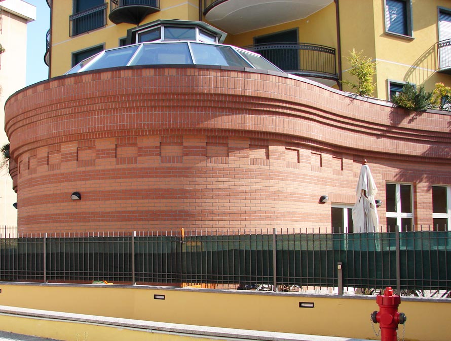 Le fasce marcapiano possono essere disegnate in molti modi diversi: anche in questo caso il mattone, elemento modulare per eccellenza, si presta a essere combinato in innumerevoli varianti. Che diventano ancora più numerose se si aggiungono le variabili di colore (con l’utilizzo di tonalità differenti) e di forma (con pezzi tagliati o speciali).