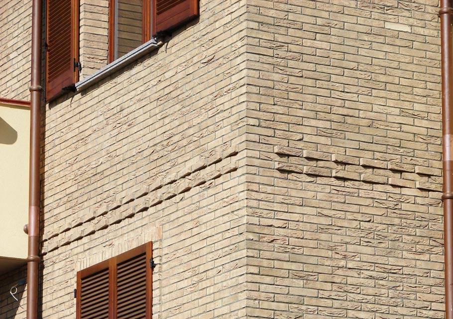 - giacitura (quando è cambiato il modo in cui il mattone è disposto sulla facciata: esempio classico è la fascia marcapiano dove il mattone è disposto a coltello, ossia in piedi e con la sua faccia più sottile a vista)