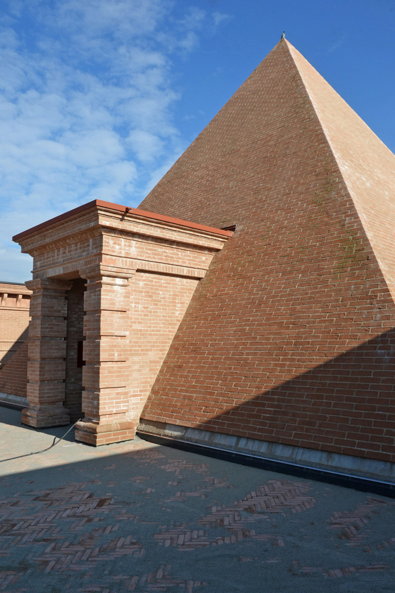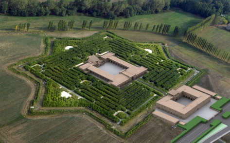 Il labirinto lo disegna insieme all’architetto torinese Davide Dutto, mentre la parte edificabile – rigorosamente in mattoni, ispirata alle architetture della rivoluzione francese alla Étienne-Louis Boullée – la progetta con un altro architetto, il parmigiano Pier Carlo Bontempi.
