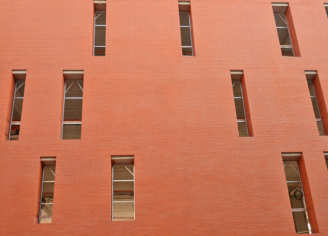 La cifra estetica della struttura è caratterizzata dai rivestimenti in mattone a vista. Realizzati con la tecnologia della ventilazione naturale, la parete esterna è formata da mattoni trafilati legati con malta di colore bianco, che esalta la trama regolare della posa.